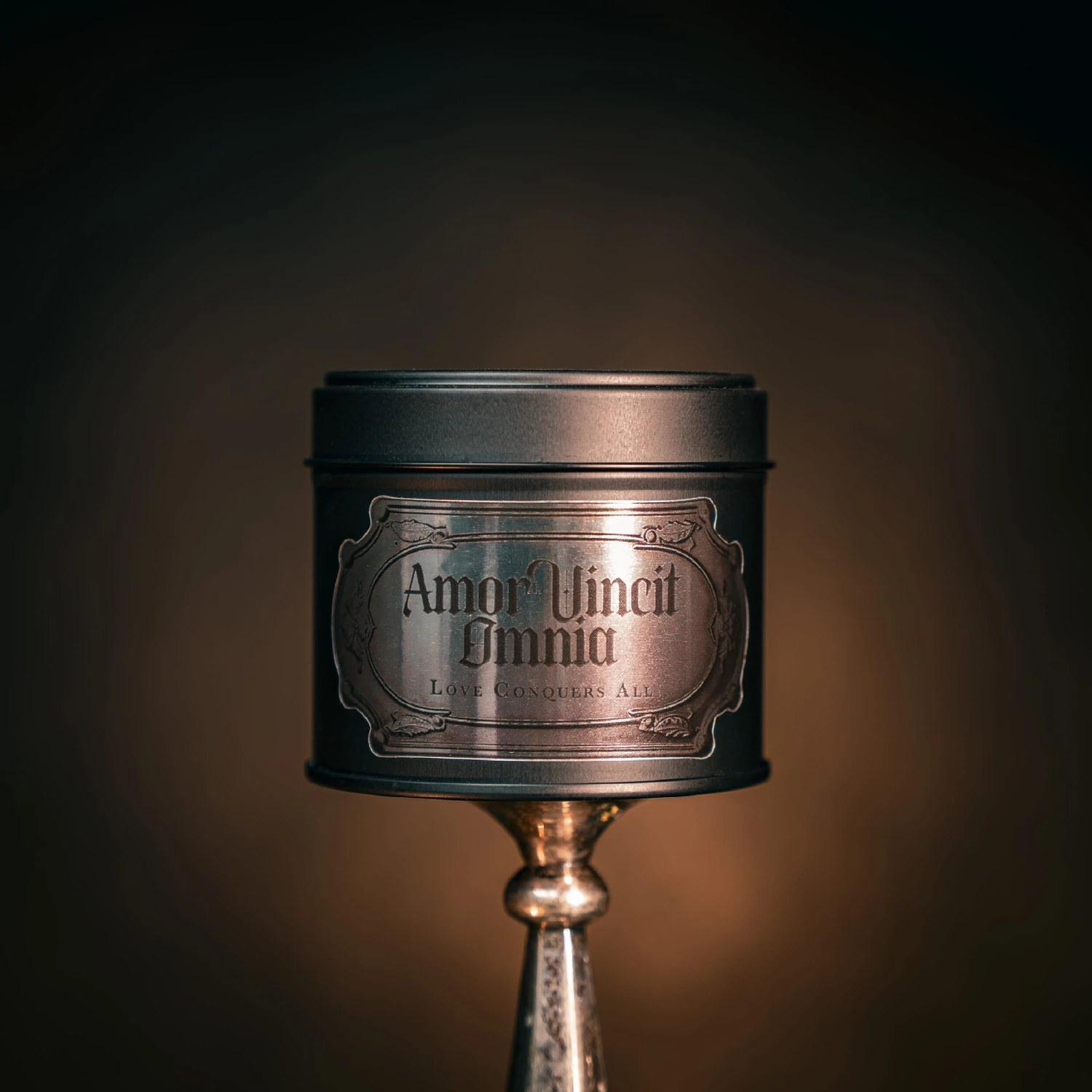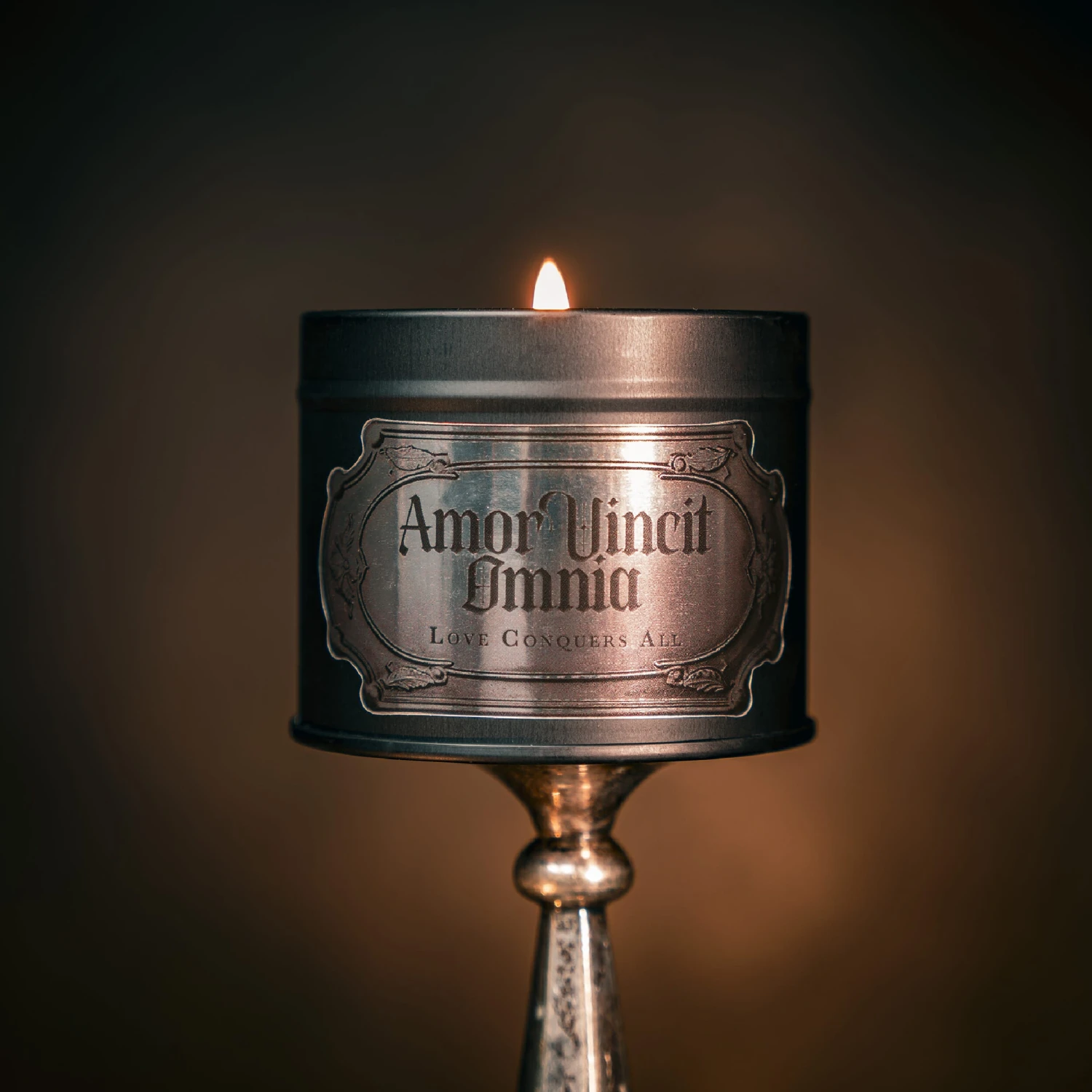 Amor Vincit Omnia Tin Candle by The Blackened Teeth.