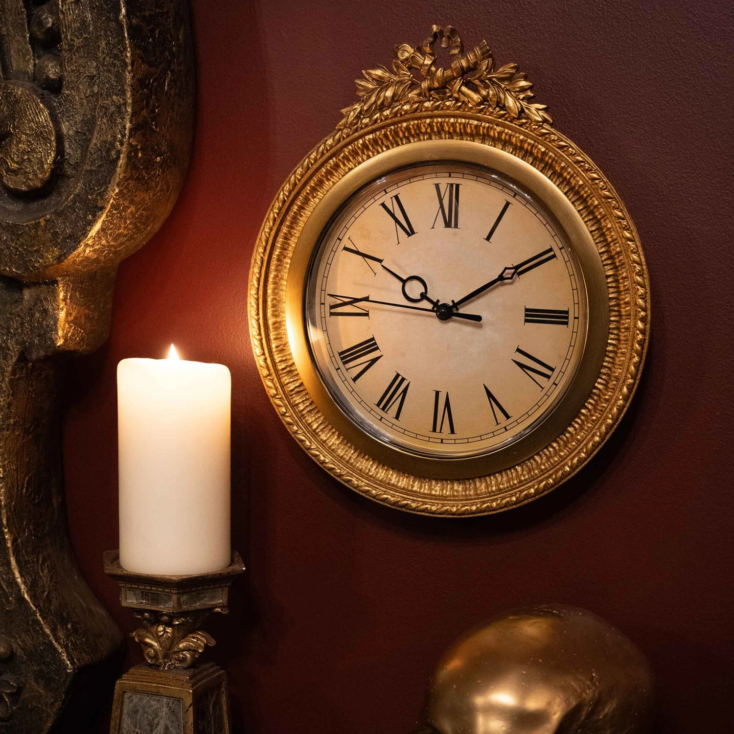 Transform your living space with the opulent Baroque Gold Clock. This exclusive timepiece can effortlessly enhance any baroque or gothic-inspired gallery wall, adding a touch of regal sophistication.