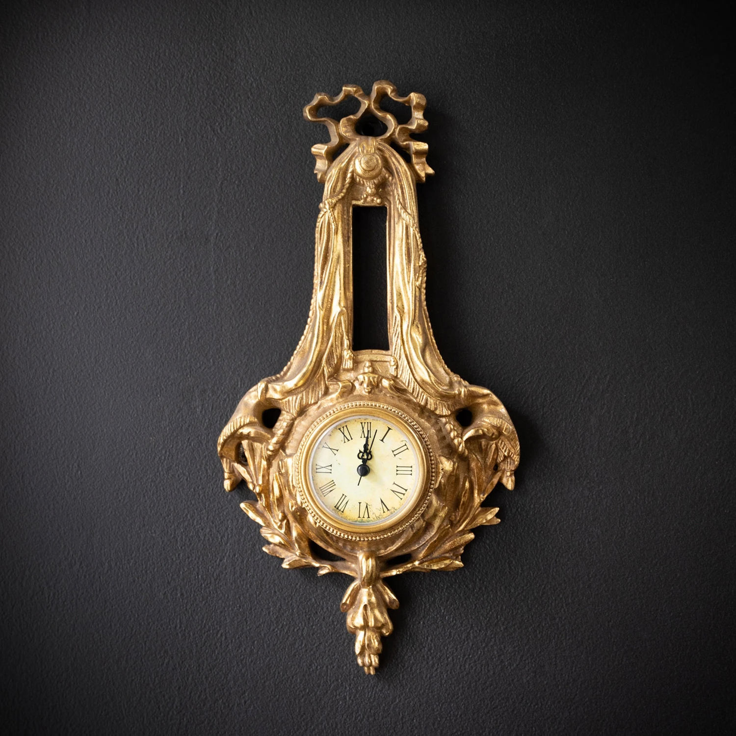 Timeless grandeur meets decadence with the Baroque Ribbon Clock. Cast in radiant gold, this ornamental timepiece is a sculptural statement that draws the eye and commands attention. Its elaborate ribbon-like frame coils with dramatic curves and regal flair, echoing the rich excess of the Baroque era.