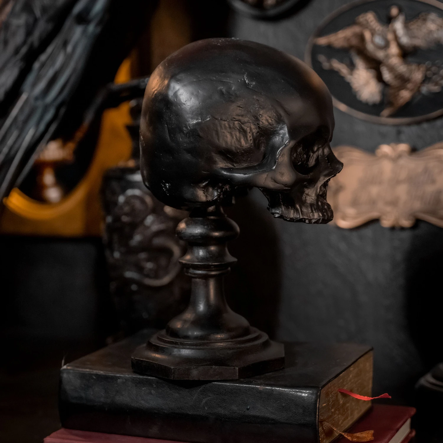 Replica Human Skull Plinth gothic home ornament handmade by The Blackened Teeth.