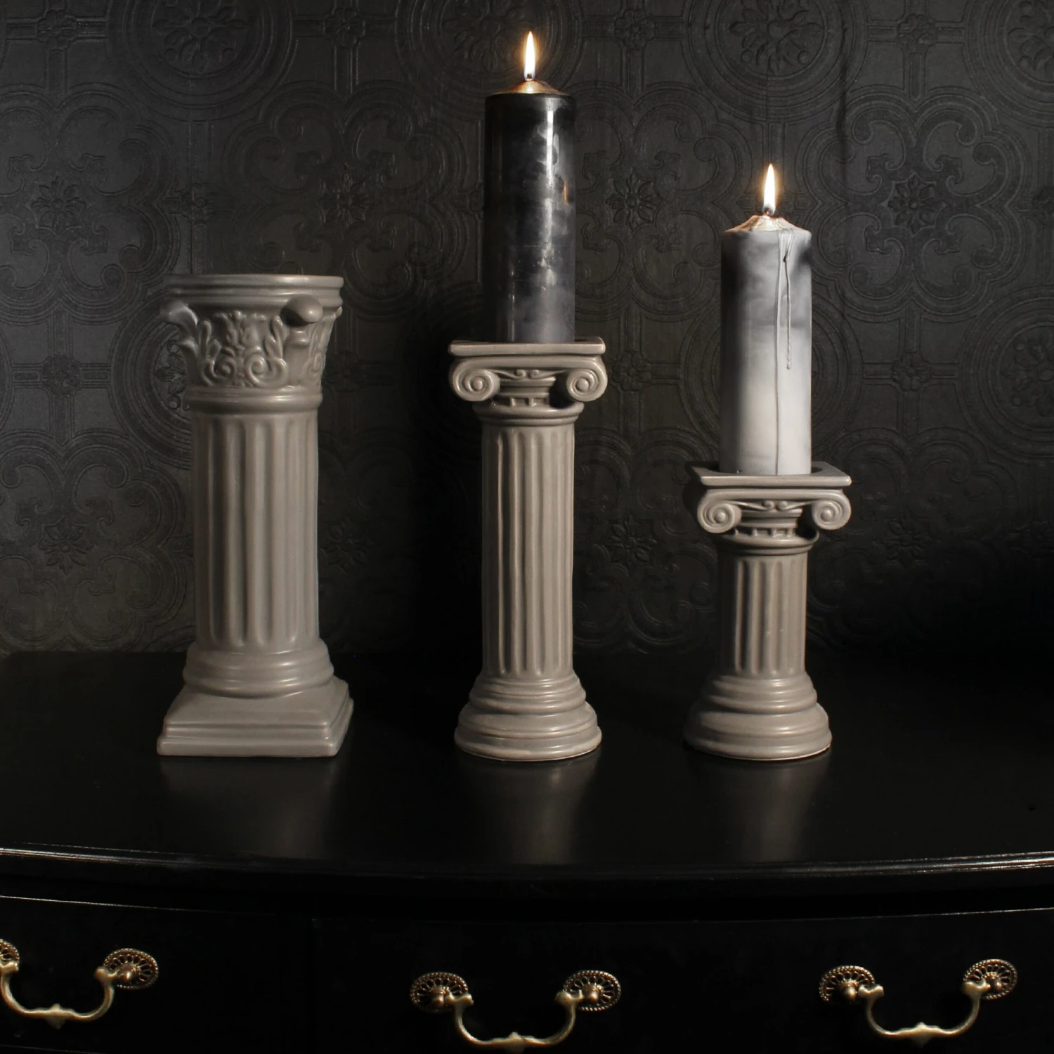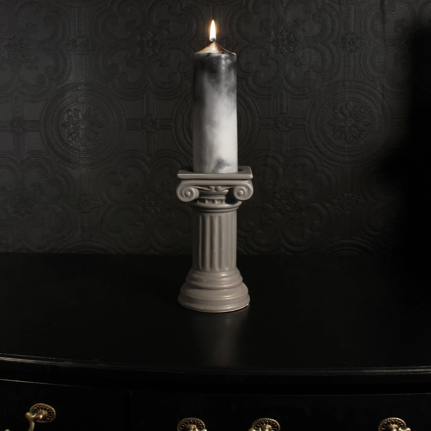 Corinthian Column Candle Holder in Stone Grey to showcase your beautiful gothic candle collection in all its grand glory.