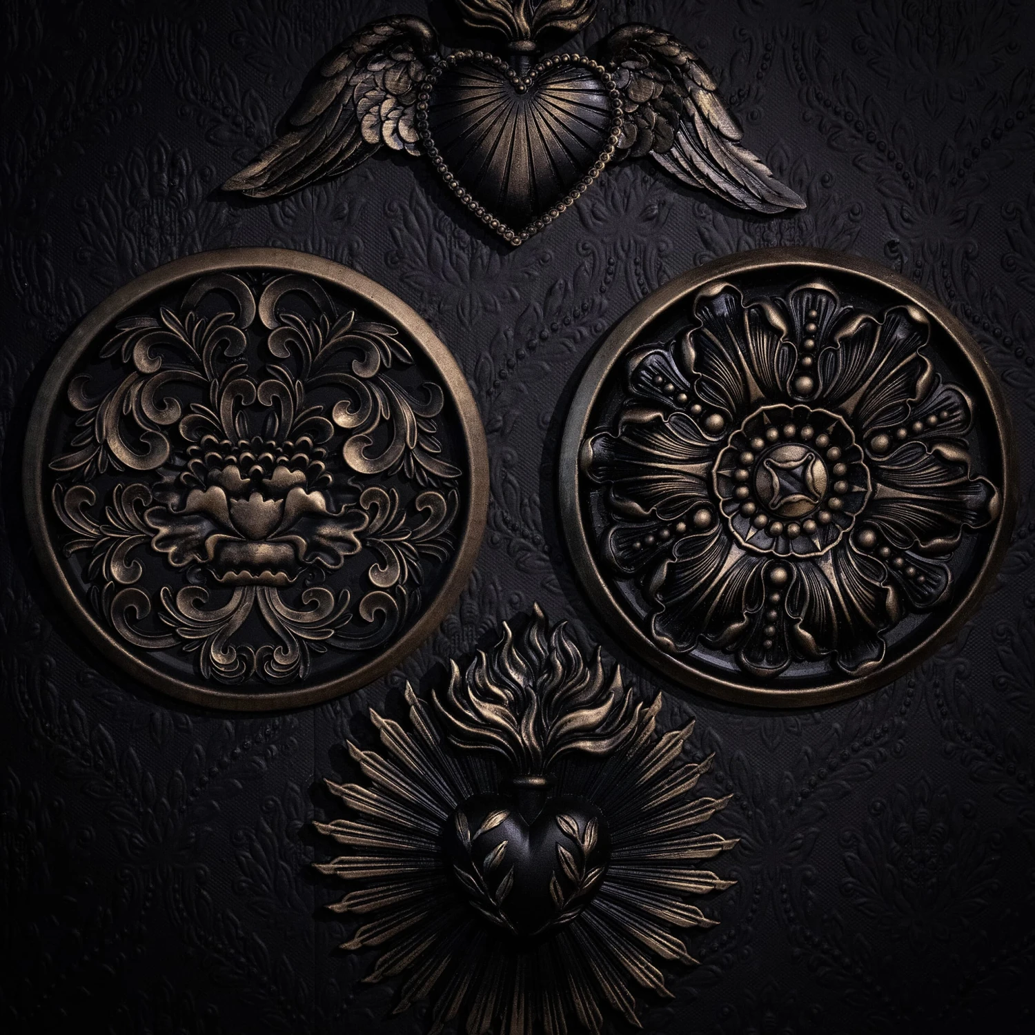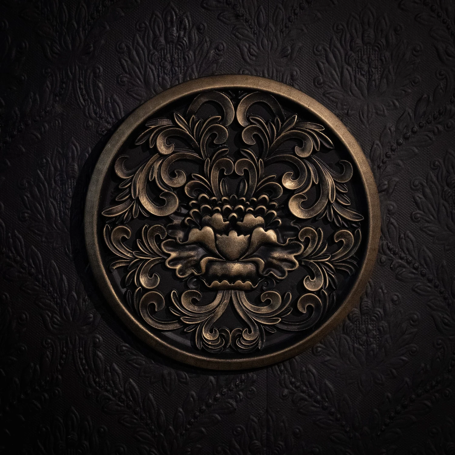 Crafted in a blackened gold colourway, a Victorian rosette design that will make a unique statement that adds instant refinement and opulence to a gothic home.