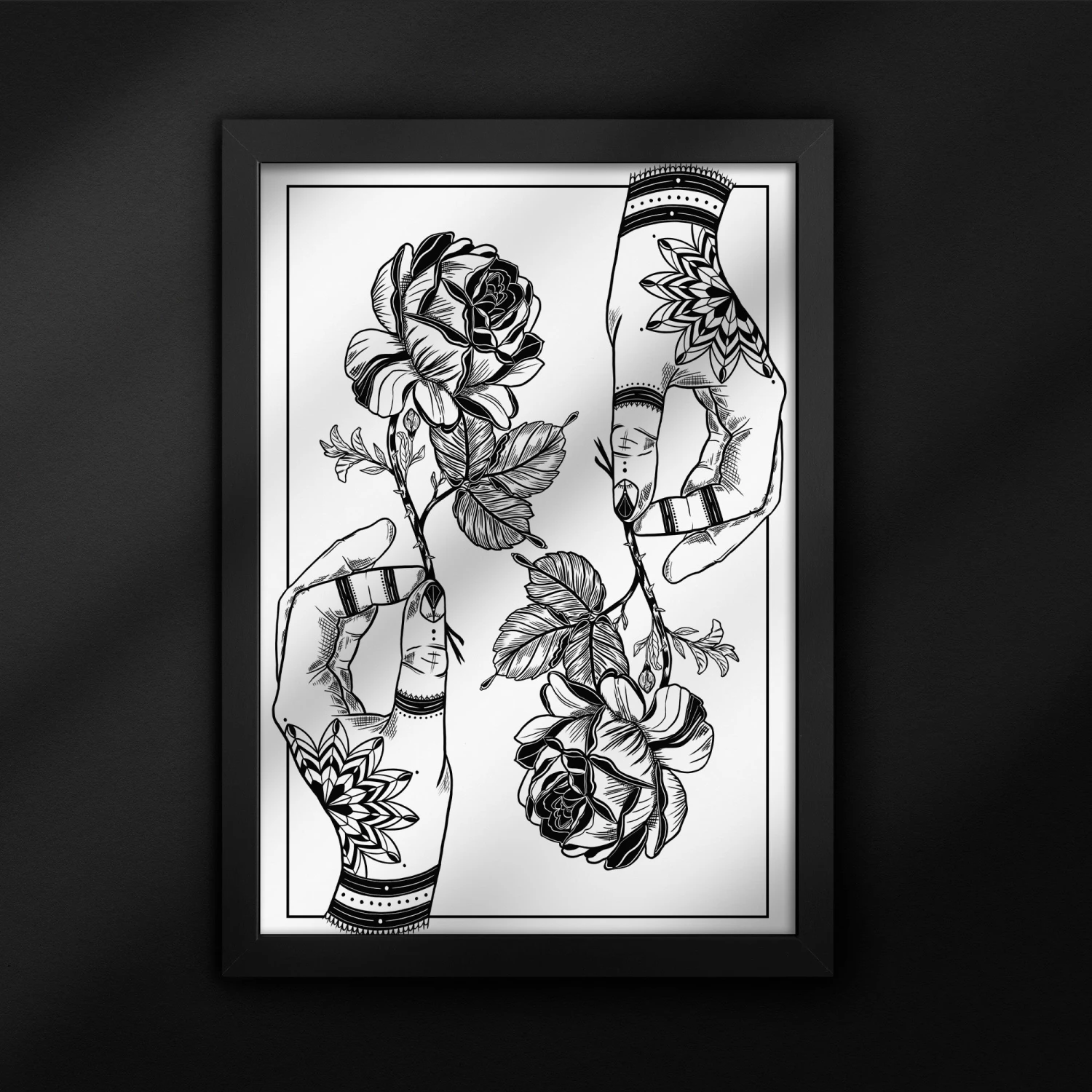 ‘Framed Print’ – Includes Print & your choice of frame. Your artwork will arrive placed in its frame. Clear perspex covers your print. A3 Frames can be wall-hung.