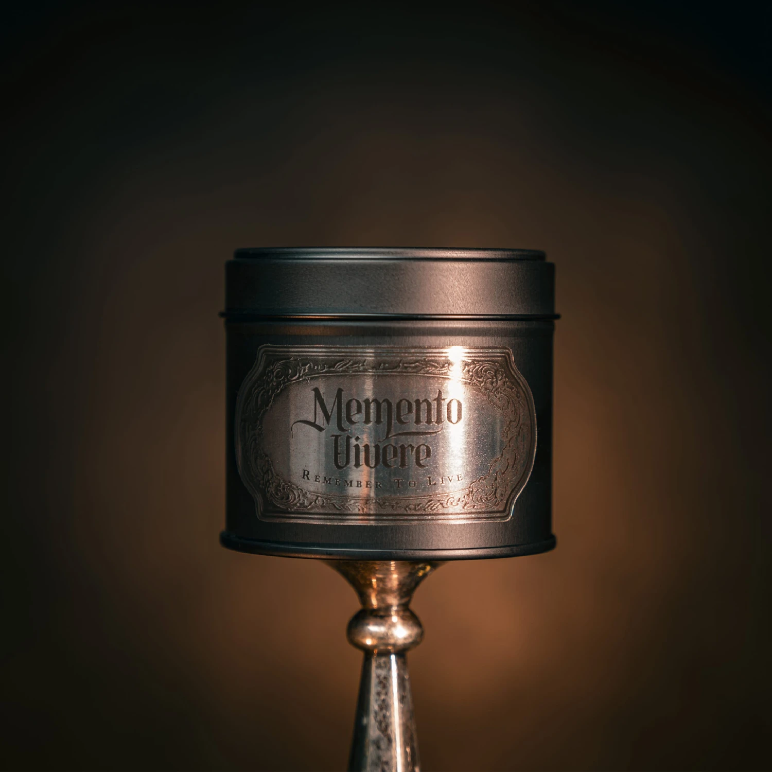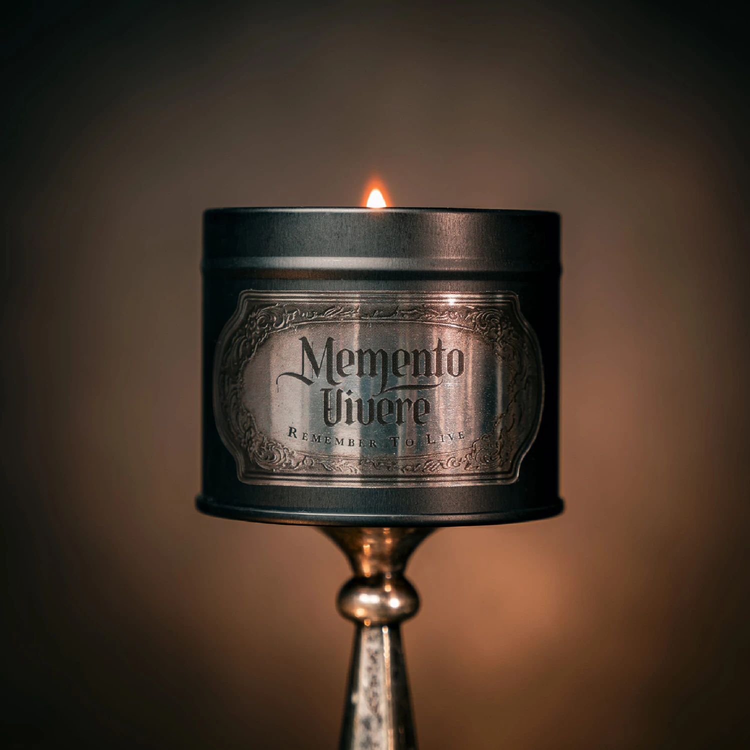 Memento Vivere Gothic Tin Candle by The Blackened Teeth.