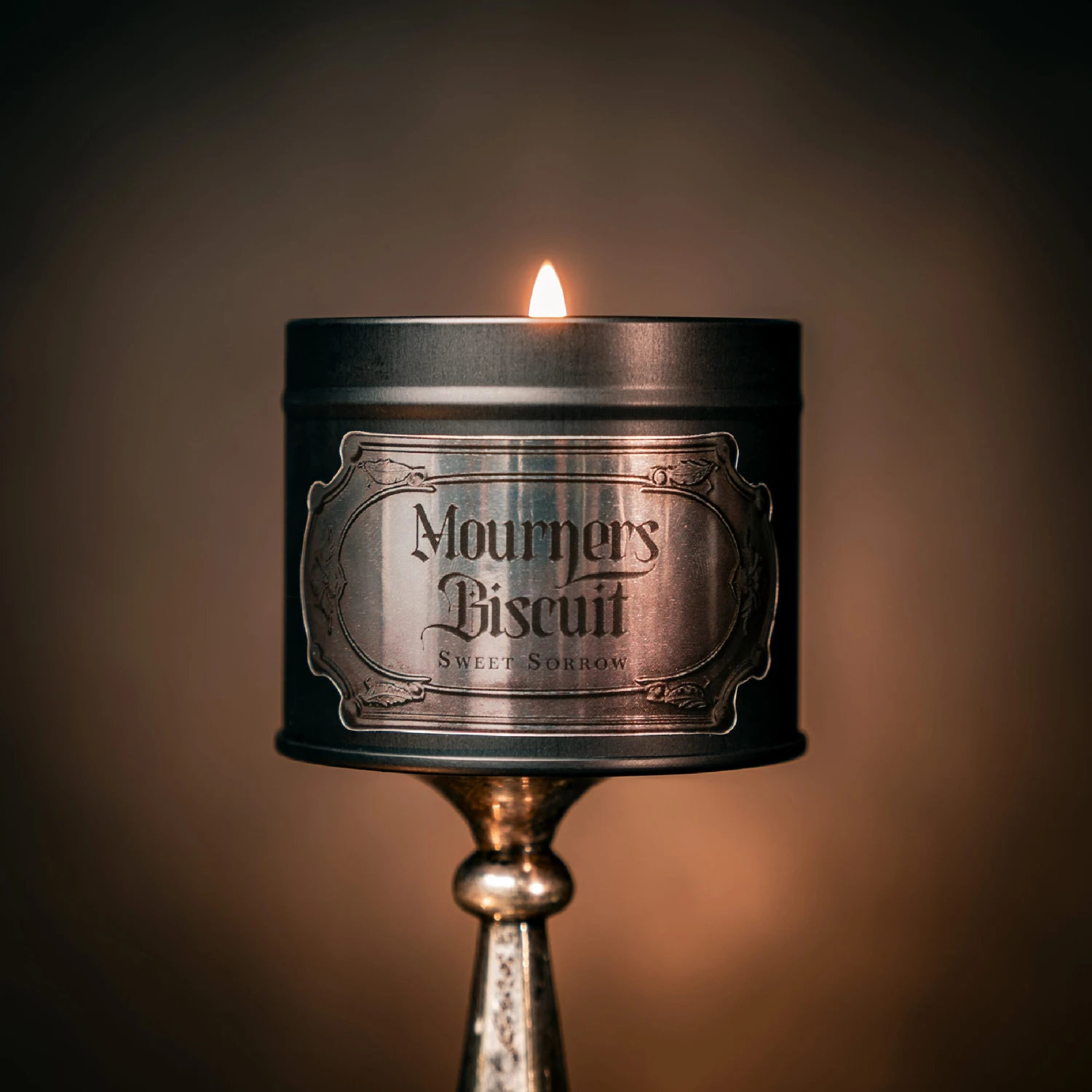 The Blackened Teeth Artisans have created their twist on these astute Victorian macabre confections. The Mourners Biscuit is our new jar candle that makes sorrow – sweet.