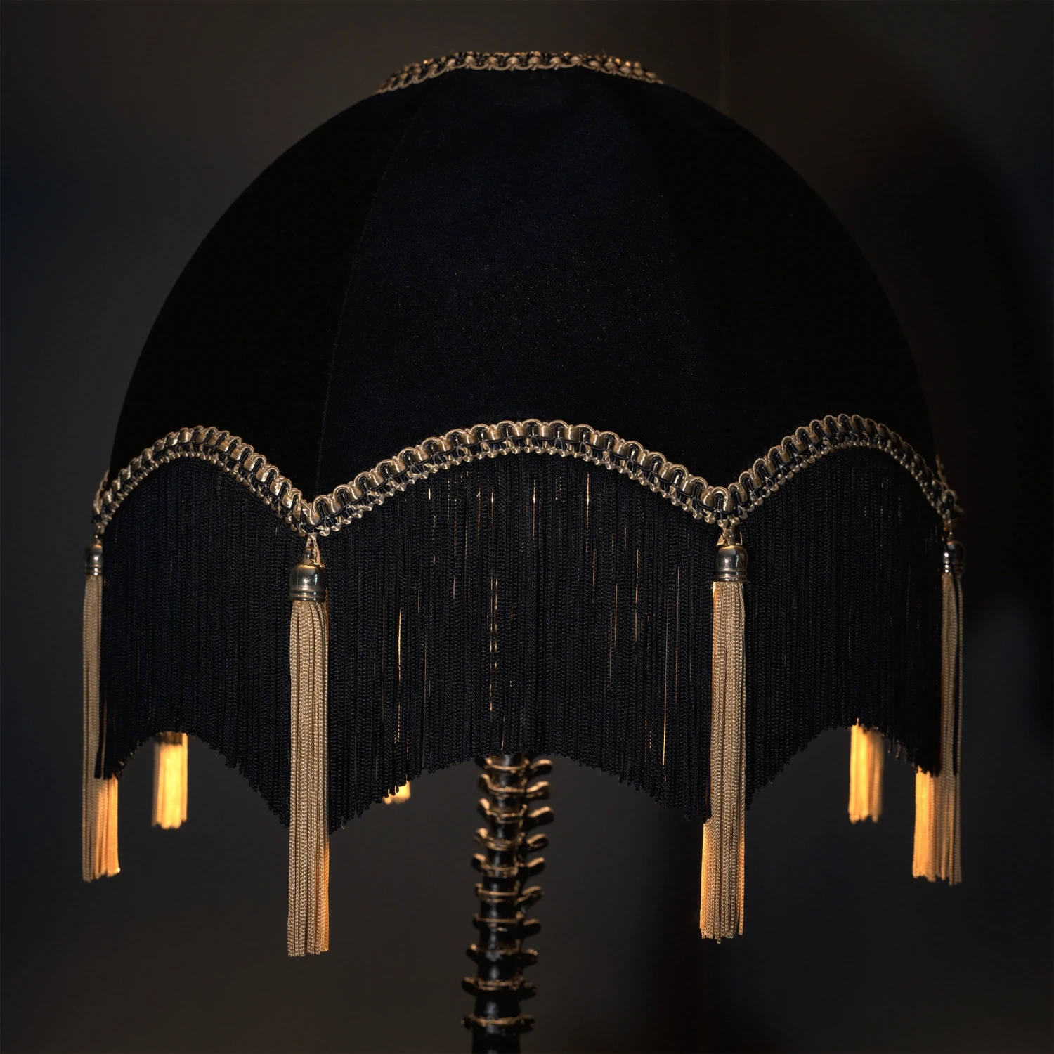 The Priscilla Blackened Baroque Lampshade combines a classical style lampshade with a gothic aesthetic, adding a dark sophisticated touch to your lamps.The lampshade can be used to adorn table lamps or ceiling lights.