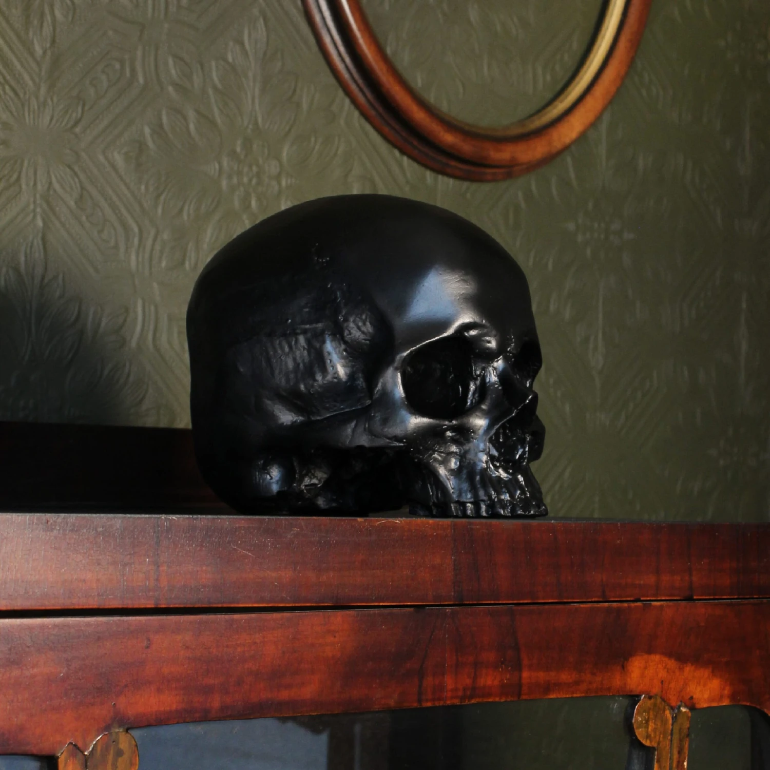 This skull ornament is the perfect addition to the gothic home. Our cabinet of curiosities style skulls add the sophisticated touch to the gothic living room or study.
