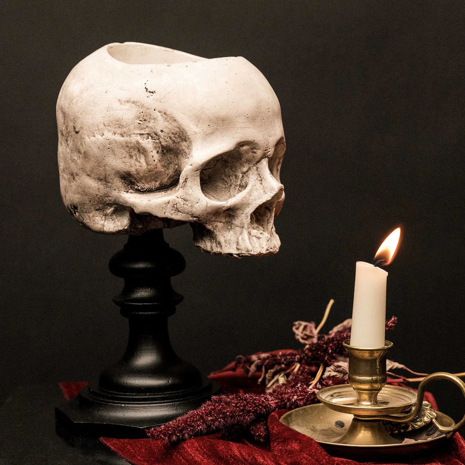 Replica Human Skull Plinth Pot gothic ornament handmade by The Blackened Teeth.