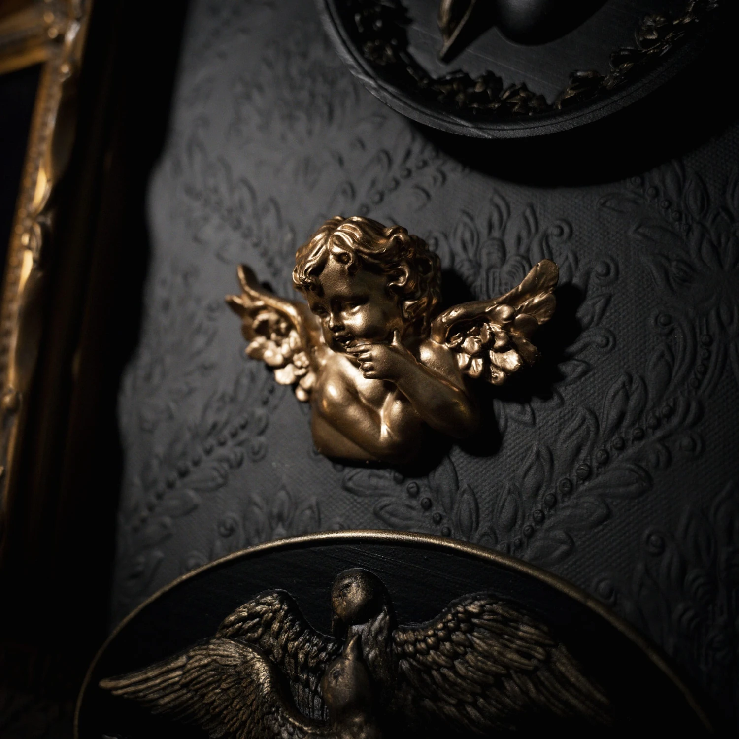The Small Golden Cherub wall hanging. Add an iconically baroque cherub sculpture to your gothic gallery wall in gold effect to achieve a renaissance feel.
