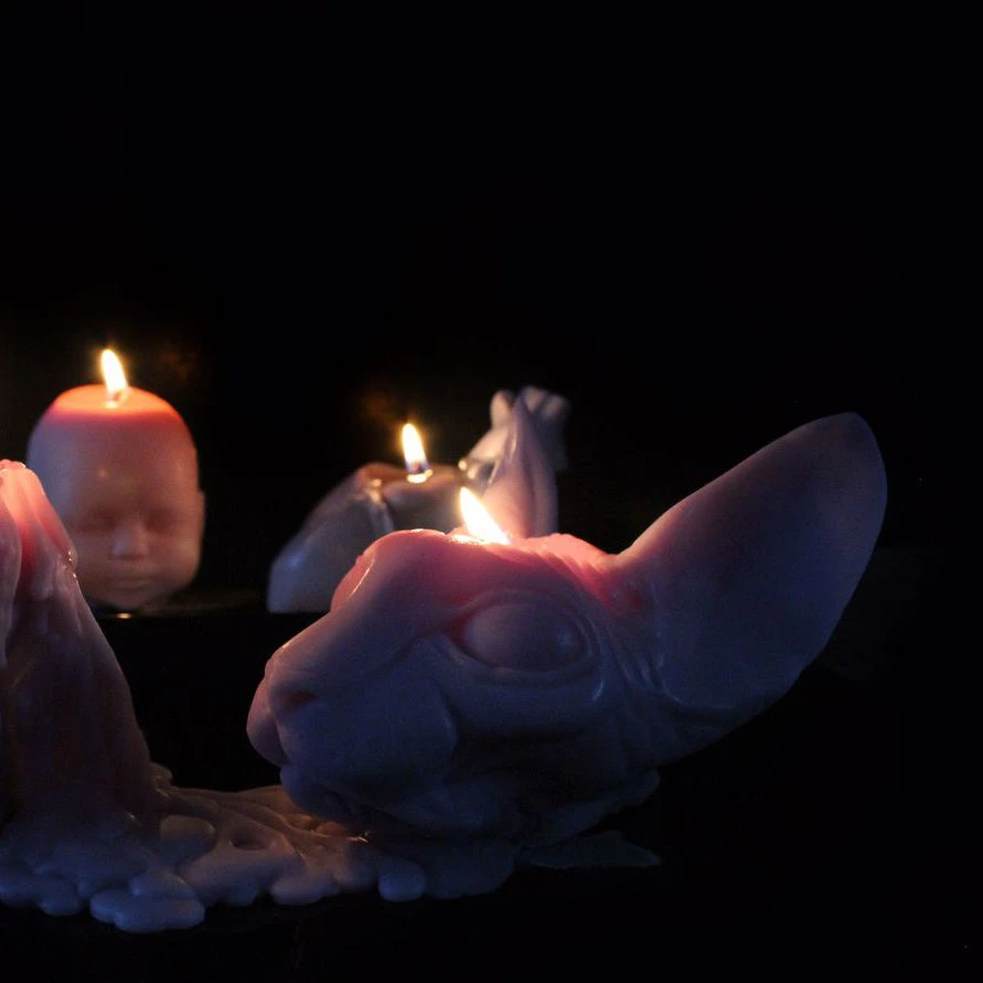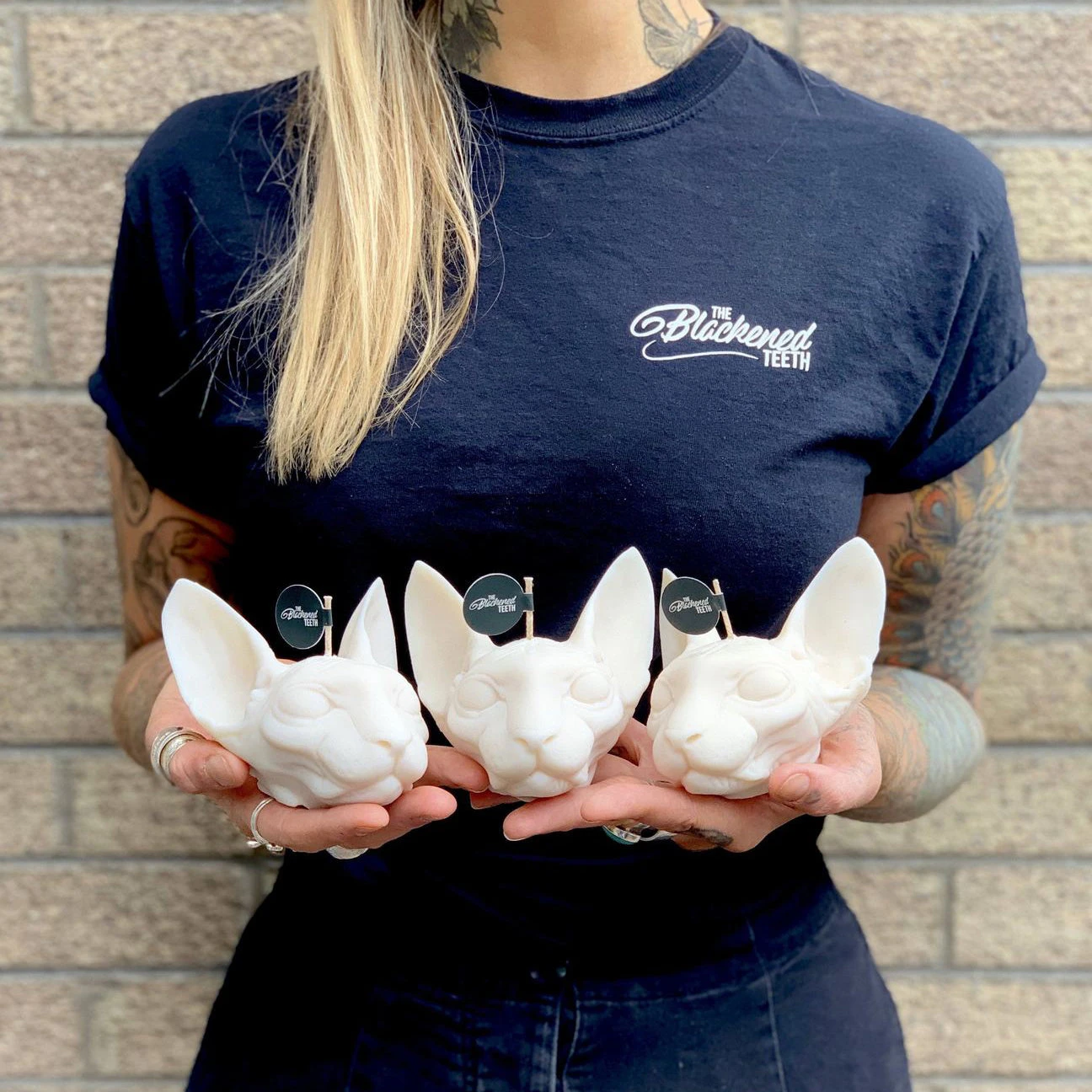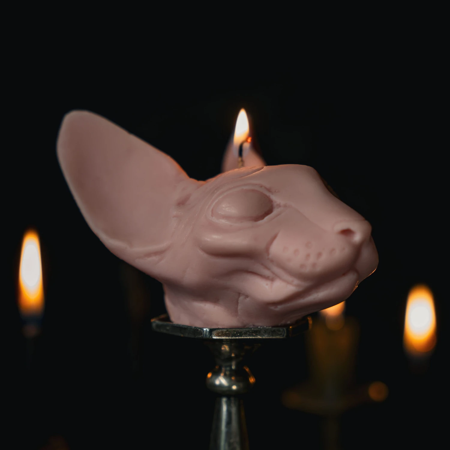 The Sphynx Cat Candle is handmade by The Blackened Teeth.