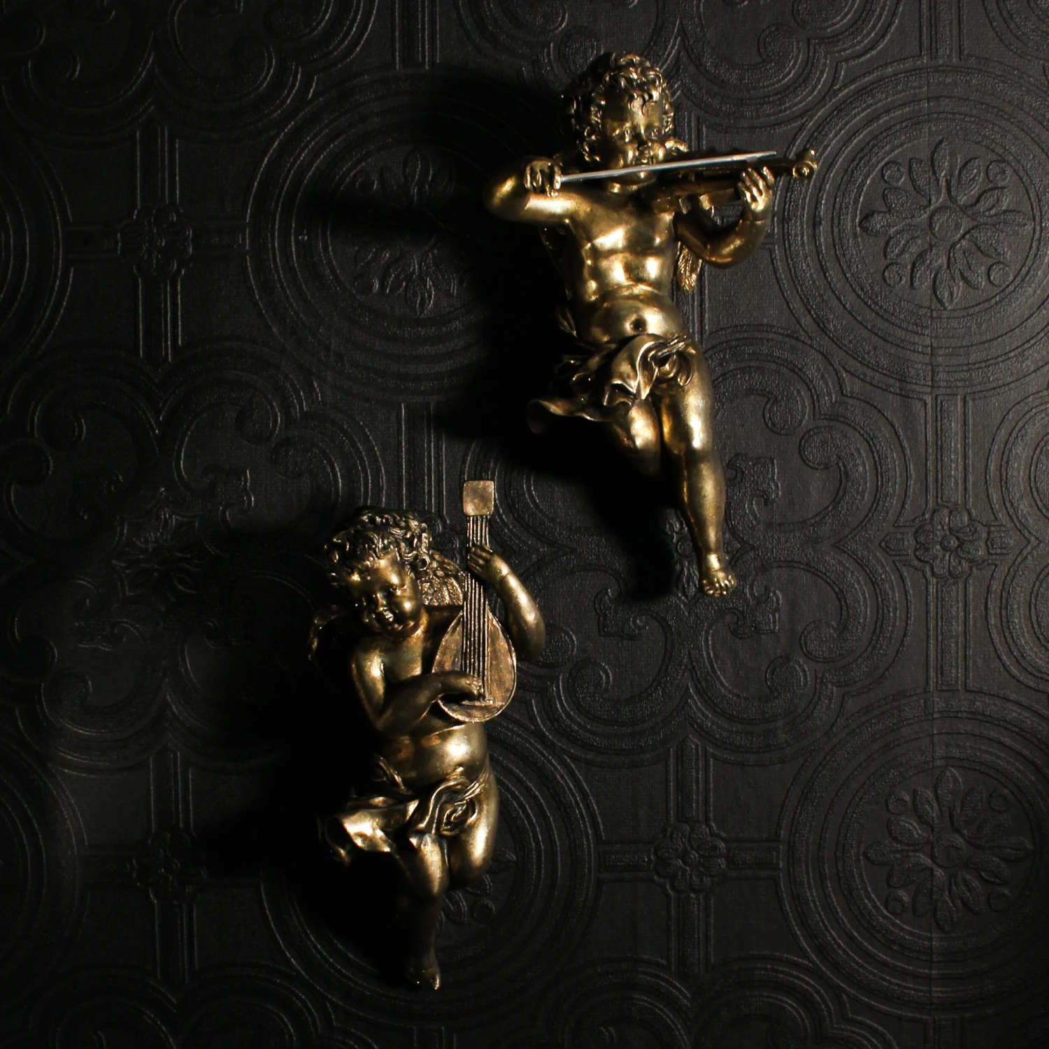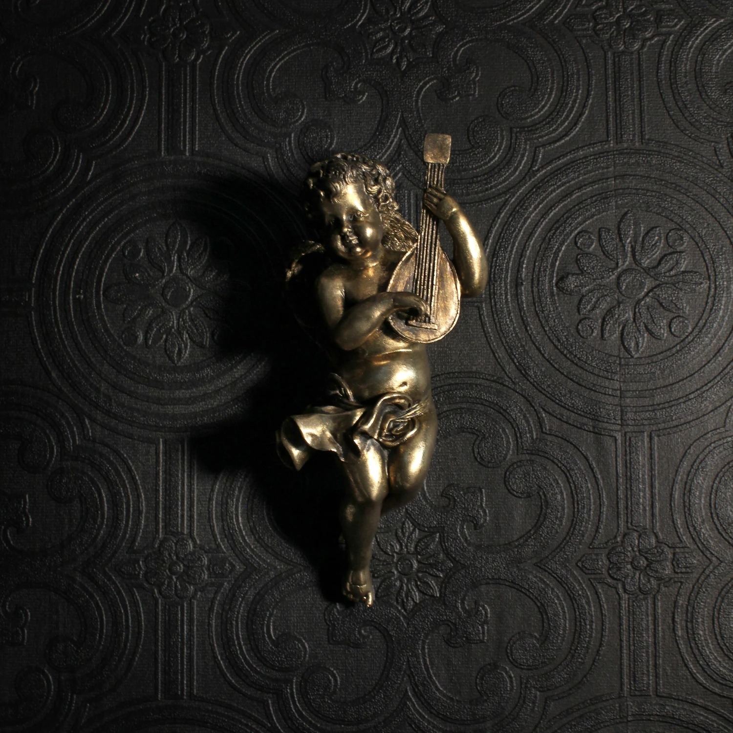 The Golden Cherub with Mandolin wall hanging. Add an iconically baroque cherub sculpture to your gothic gallery wall in gold effect to achieve a renaissance feel.
