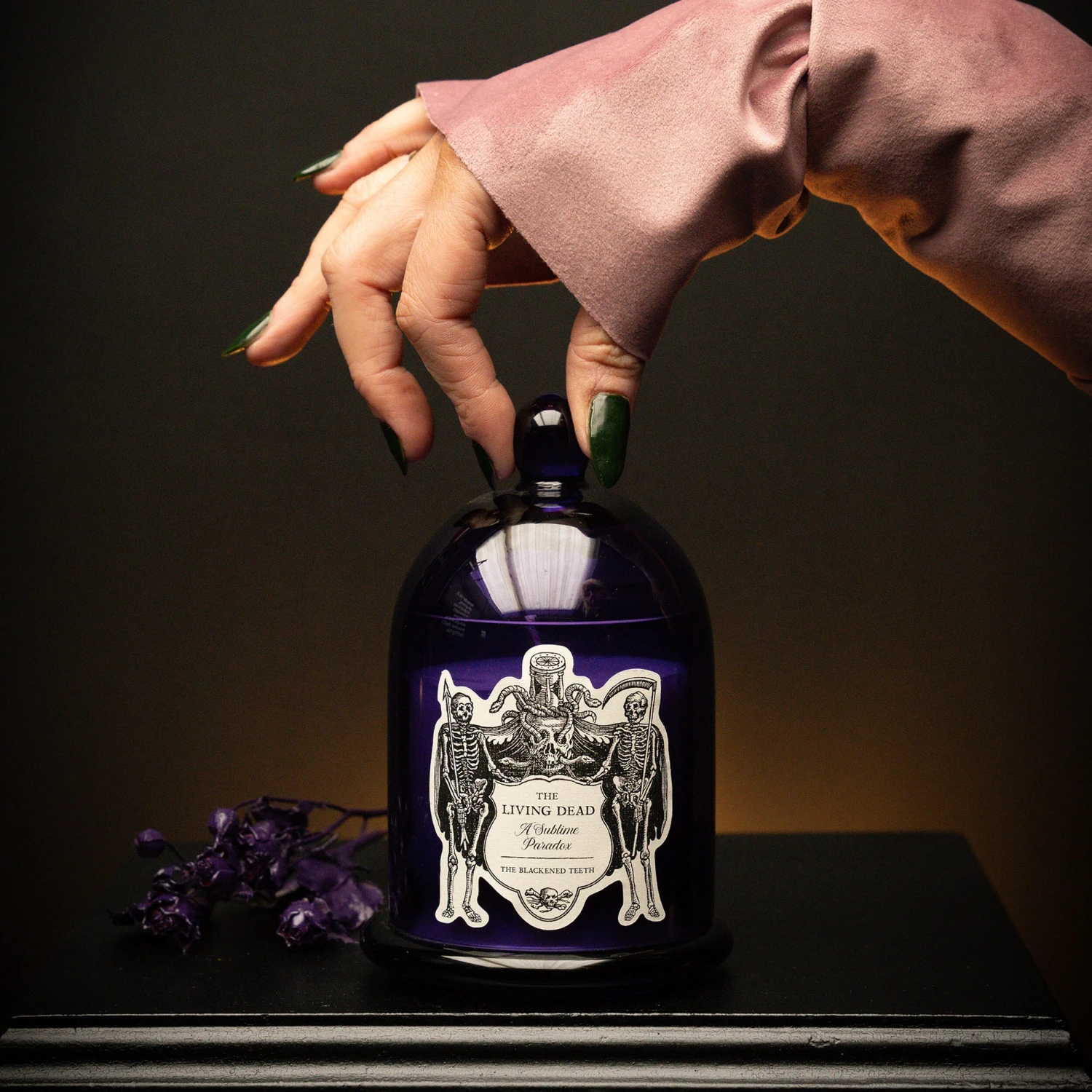 The uniquely designed purple cloche jar candle is a part of the Danse Macabre collection this Halloween. All of our cloche jar candles are hand-poured in our UK Workshop by our in-house Chandlers using a natural coconut wax blend (vegan friendly) and premium quality fragrance oils (vegan friendly).