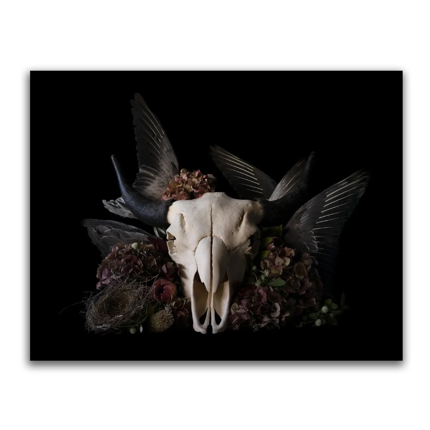 Untitled 72 is part of an ongoing collection of photographs called ‘Onwaecnan’ which encompasses works of neo-victoriana still life images. Onwaecnan was inspired by the artist’s preoccupation with our impermanence and the death rituals of cultures across time and the globe. Pulling from vanitas imagery of seventeenth century Dutch masters, the work combines contemporary mediums with Renaissance styling to speak to modern viewers of mortality, connection and to encourage inner contemplation.