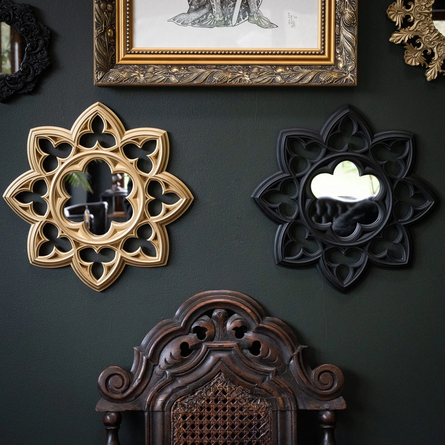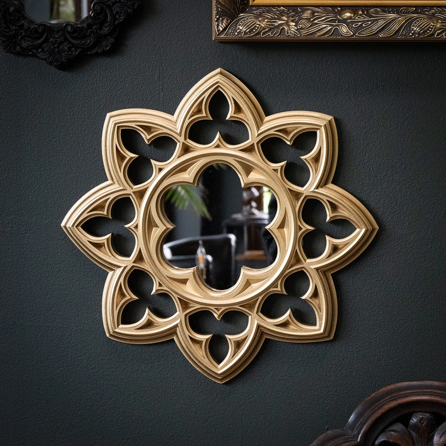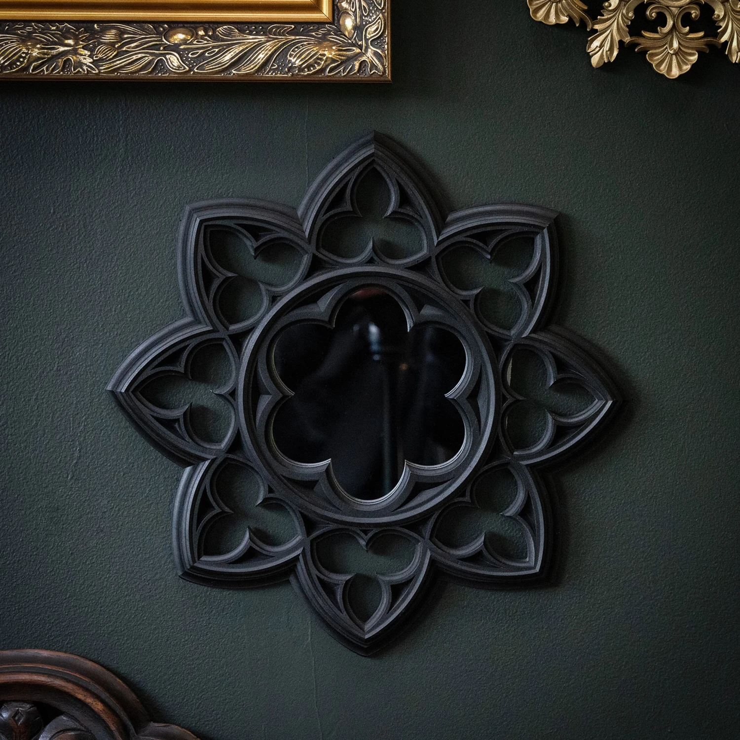 The Vesper Gothic Window Mirror. Created from our adoration of gothic architectural forms, the Vesper mirror is an intricate beauty ready to adorn the gothic gallery wall. A beautiful addition to the gothic home.